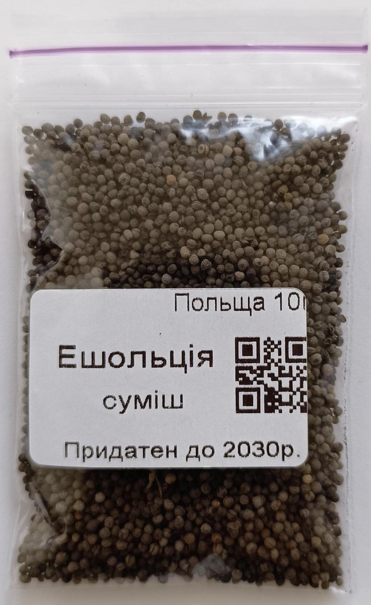 Ешшольція суміш – це однорічна рослина, висотою 30-50см. Невелике, дуже витончене однорічна, трав’яниста рослина. Листя зібрані в розетку, тричі тонко розсічені, голі, сизо-зелені, з восковим нальотом. Над розеткою підноситься безліч яскраво-жовтих квіток чашоподібної форми близько 3 см в діаметрі. Цвіте з червня до глибокої осені. Плодоносить. Насіння зберігає схожість 2-3 роки.