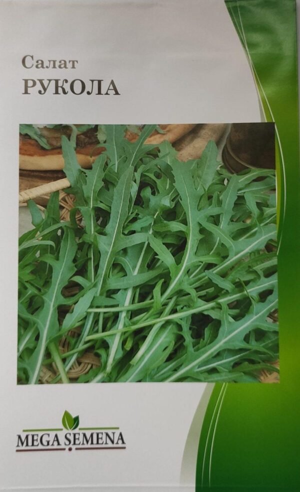 Однорічна рослина сімейства хрестоцвітих, висотою до 60 см. Листя ліровидно-перисте, містить вітаміни групи С, В, Р, каротин. Своєрідне поєднання ефірних олій забезпечує рослині яскраво виражений аромат та гострий гірчично-горіховий присмак. Рукола широко використовується в кулінарії для приготування салатів, як пряність додається до багатьох страв італійської кухні. Для отримання ніжної, соковитої зелені важливі регулярні поливи.