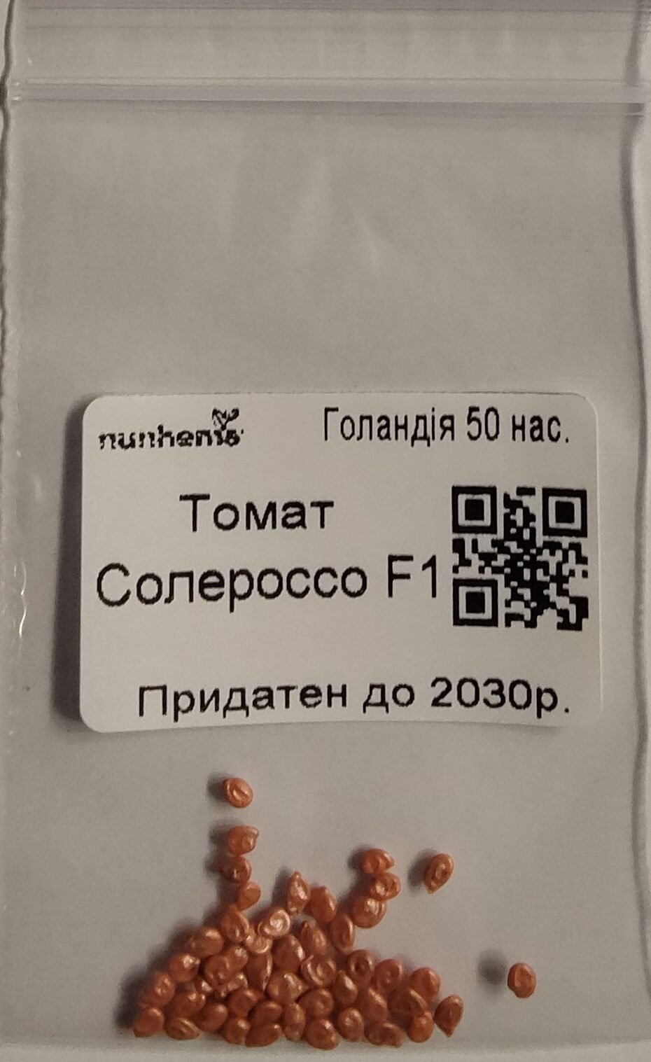 Томат Солероссо F1. Виробник Nunhems (Голландія). Опис томат Солероссо. Ультраранній (90-95 днів) голландський гібрид томатів для вирощування у відкритому ґрунті. Гібрид томату відрізняється поєднанням унікальної ранньостиглості з високими транспортабельними та смаковими якостями помідорів. Основне призначення томатів це цільноплідне консервування, переробка на томатну пасту, кетчуп, а також для продажу ранньої продукції. Рослина середньої сили росту, компактна, листя виконує захисну функцію плодів від сонячних опіків. Томат Солероссо F1 формує округлі плоди, середня маса 60 г. Дуже висока врожайність досягає 100 т/га. Дуже дружній урожай.